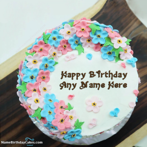 Beautiful Flower Birthday Cake With Name Image