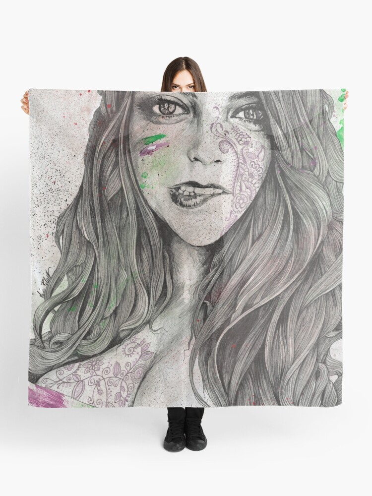 U Turn Mandala Tattooed Woman Drawing Portrait Scarf